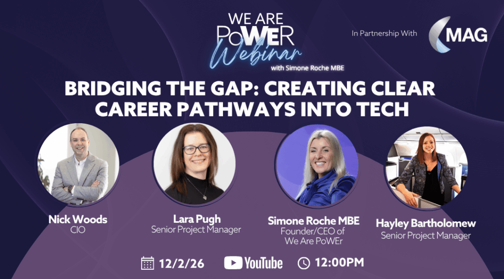 Technology careers are full of opportunity, but access to those opportunities isn’t always equal. In this honest and practical conversation, hosted by Simone Roche MBE, we explore how organisations can build clearer, more inclusive pathways into tech for underrepresented groups. Our guests bring diverse experience across leadership, transformation, and community-building, and together, we’ll uncover what […]