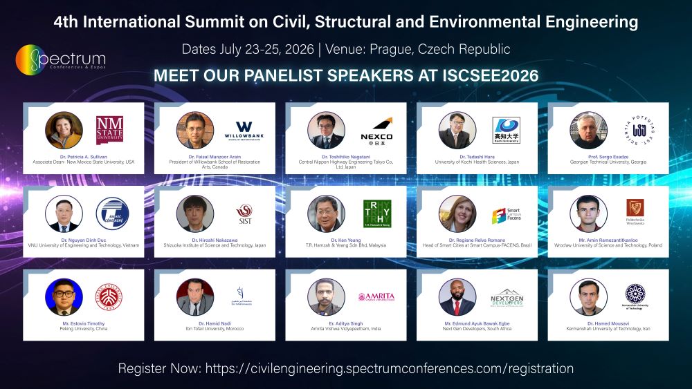 Spectrum Conferences cordially invites you to its 4th International Summit on Civil, Structural and Environmental Engineering (ISCSEE2026), which is going to be held in Prague, Czech Republic during July 23-25, 2026. Civil Engineering, Structural Engineering, Environmental Engineering, Geotechnical Engineering, Transportation Engineering, Construction Engineering, Water Resources Engineering, Hydraulic Engineering, Earthquake Engineering, Coastal Engineering, Offshore Engineering, Urban […]